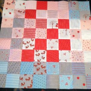 Thanks to the Olympics, I spent a large chunk of the day parked on the couch sewing. The result, I am nearly finished with the Red Riding Hood Quilt!